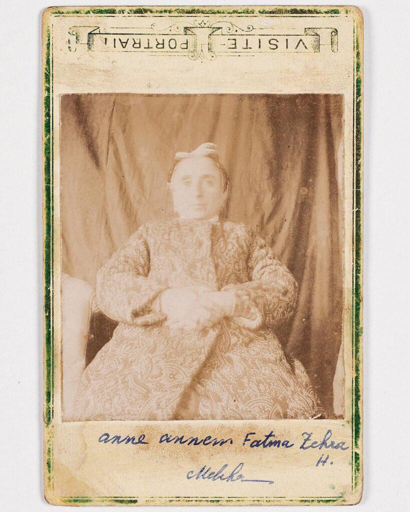 Lakin kıymetini bildiği sadece bu fotoğraf değil. Mualla Hanım’ın anneannesi olan Hatice Şahiye Barlas Osmanlı’nın ilk kadın fotoğrafçılarından biri. 1890’lı yıllarda fotoğraf çekip filmleri evindeki karanlık odada karta basan bir kadın. Uzun yıllar da fotoğraf çekiyor. Mualla Hanım’ın annesi Meliha Hanım da ailede saklanan tüm fotoğrafların kime ait olduğunu, hangi tarihte ve nerede çekildiğini belirterek bunları özel olarak yaptırıp kapağına adını yazdırdığı bir albümde topluyor. Bu albümün ilk fotoğraf da Şahiye Hanım’ın çektiği ilk fotoğraf olan annesi Fatma Zehra Hanım’ın ait kare.
