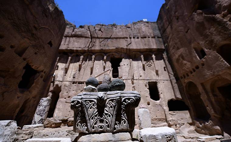 Gümüşler Manastırı’ndaki iç avlu onu Kapadokya’daki diğer manastırlardan ayırıyor.