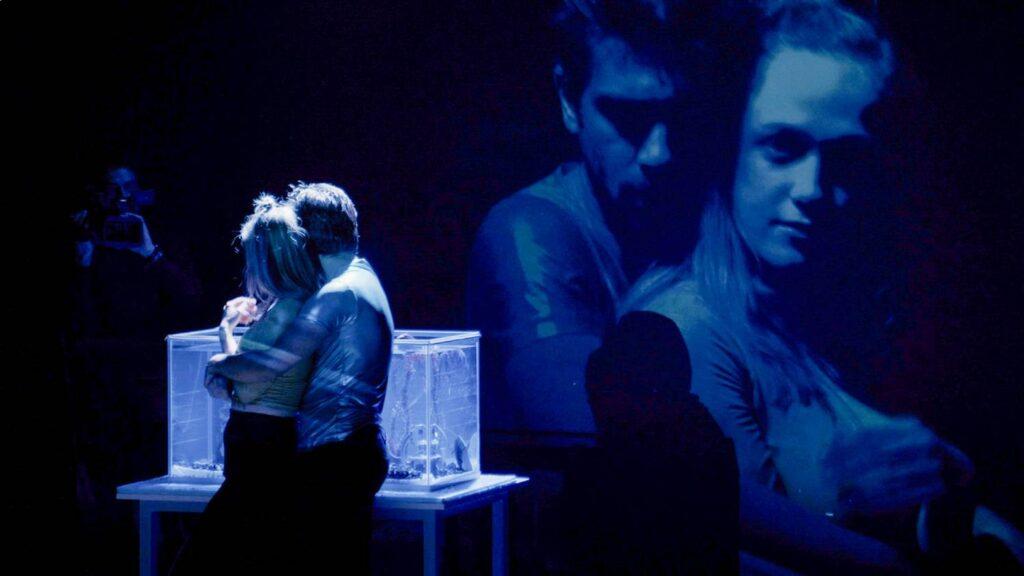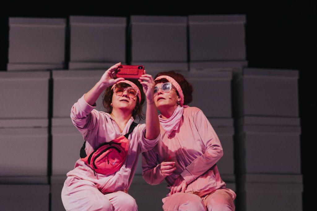 Her bir sahnede başka türlü bir şiddet hali çıkacak karşımıza. Bir yandan da tüm bu çığırından çıkmışlık hali içinde yeni moda usullerle bedenini ve zihnini ‘iyi etmeye’ çalışan (pozitif enerjiler, olumlamalar, meditasyonlar, nefes terapileri, su içmeyi bile deneyim olarak yaşamalar vs…) insanlar göreceğiz. Presnyakovlar metni 2000 senesinde yazmış; izlediğimiz, belli ki ekip tarafından güncellenmiş hali. Sosyal medyanın hayatımızı neredeyse tamamen ele geçirmesini ve uygulamalara gelen her yeni güncellemeyle daha fazla köpüren görülme/beğenilme arzumuzu, oyunun merkezine yerleştirmiş yönetmen. Sahnenin gerisine dizilen kutulara oyunun tüm parçalarından anlık görüntü (selfie’ler, video’lar vs.) yansıtarak bunu iyice belirginleştirmiş.