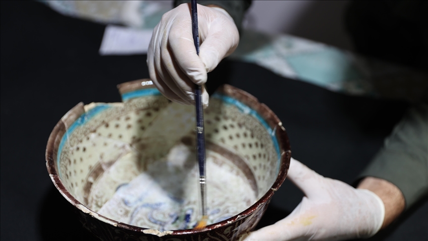 “Harran kazılarında lüster yani fırınlama tekniğiyle yapılan bir kap ilk defa bütün olarak bulundu. Harran Medresesi’nde tören kabı olarak kullanıldığı, uzman meslektaşlarımız tarafından da ifade ediliyor. Seramik yapımının altın çağının olduğu bir dönemde en iyi en üst düzeyde lüster tekniğiyle 3 kez fırınlanarak yapılmış. Bu medresemizin bulunduğu tabakayı Zengiler ve Eyyübiler dönemine, milattan sonra 12. yüzyıla, günümüzden yaklaşık 900 yıl önceye tarihledik. İç kısmında ve dış çevresinde Arapça yazılar var. Kabın orta kısmındaki en büyük mavi renkli yazıda ise ‘O, kendisine sürekli bir izzet bağışlanan kimsedir.’ geçmektedir.”