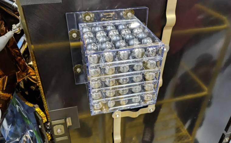 Aya yumuşak iniş yapan Odysseus uzay aracındaki heykel 125 minyatür aydan oluşuyor.