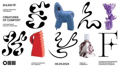 Ehlikeyif / OMM Eskişehir: Eskişehir’deki OMM – Odunpazarı Modern Müze, çağdaş eserleri ve fantastik tasarımları bir araya getiren Ehlikeyif sergisiyle sezonu açıyor. Küratörlüğünü İdil Tabanca’nın üstlendiği sergi; resim, heykel, yerleştirme ve mobilya tasarımı disiplinlerinde geleneksel sınırları aşarak yeniden yorumlayan uluslararası sanatçı ve tasarımcıları bir araya getiriyor. Sergi, 8 Eylül 2024—20 Temmuz 2025 tarihleri arasında ziyaret edilebilir.