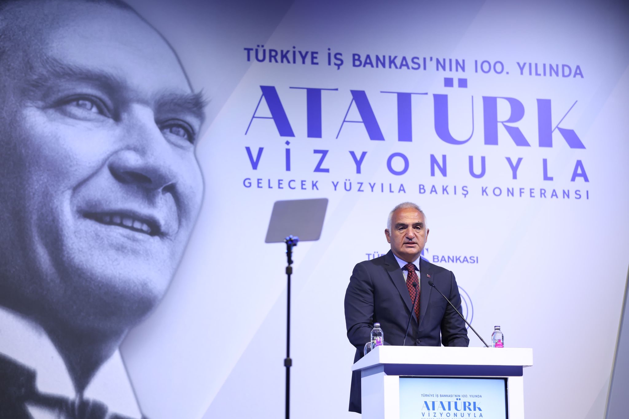 Bakan Ersoy İş Bankası’nın kuruluşunu “100 yıl önce atılan bu adım sadece bir bankanın başarı hikâyesi değil, aynı zamanda Cumhuriyetimizin Kurucusu Gazi Mustafa Kemal Atatürk’ün ileri görüşlü liderliğinin de sonucudur. Atatürk Türkiye’nin ekonomik bağımsızlığının, ülkenin siyasi bağımsızlığı kadar hayati olduğunu her zaman vurgulamıştır. Ekonomik bağımsızlık, ulusal egemenliğin güvencesidir. İş Bankası da bu vizyonun ışığında, kurulduğu günden bu yana Türkiye’nin ekonomik kalkınmasının en önemli yapı taşlarından biri olmuştur. Atatürk’ün ortaya koyduğu vizyon, yalnızca kendi döneminin değil, gelecek nesillerin de yolunu aydınlatacak bir rehberdir. Onun ekonomik ve sosyal alanlarda hedeflediği modernleşme süreci, yalnızca Batı’yı takip etmek değil, Türk milletini dünya sahnesinde hak ettiği konuma getirme çabasıdır” diyerek anlattı.