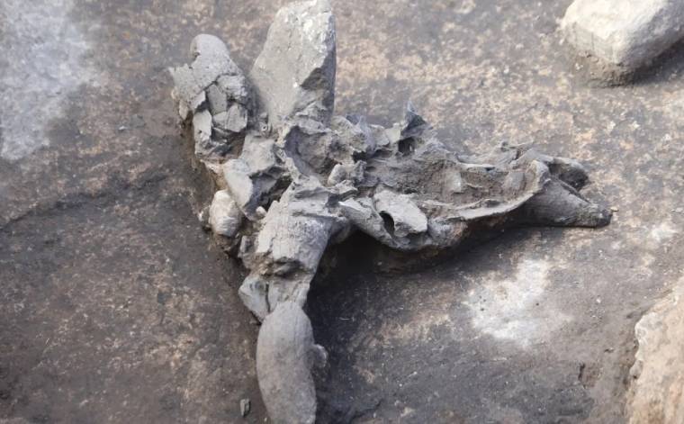 “Daha önce büyük ölçüde açığa çıkardığımız kamusal yapı kompleksinde çalışmalara devam ediyoruz. Burada merkezi bir yapı var ve ona eklenmemiş daha küçük boyutlarda yine kamusal amaçlarla inşa edilmiş binalar olduğunu biliyorduk. Bunlardan bir tanesinde geçtiğimiz yıl kazıya başlamıştık, bu sene de devam ettik. Yapının taban seviyesine geldiğimizde bir sekinin üzerinde dikili taşlarla ayrılmış oda gibi bir alanla karşılaştık. Bu alanın içerisinin kırmızı steril toprakla doldurulduğunu ve bu doldurma işlemine paralel olarak odanın içerisine taş kaplar ve tabaklar bırakıldığını gördük.