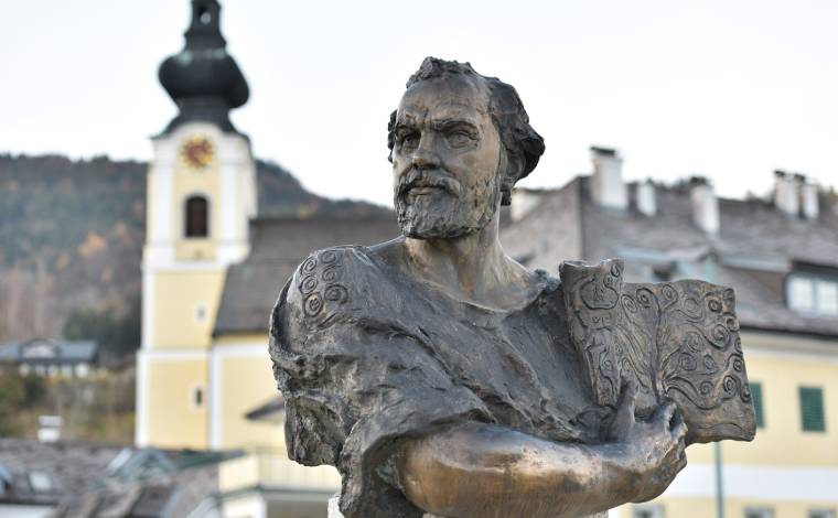 Gustav Klimt’in ömrünün önemli bir bölümünü geçirdiği Attersee’deki heykeli.