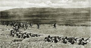 “Savaş alanı düzdü, ağaç görünmüyordu, ara ara çalılıklar vardı, sonra kum o kadar yumuşaktı ki ilerlemeyi zorlaştırıyordu. Yaklaşık 300 metre ilerledikten sonra ateş açtılar. Sanırım, onlardan daha çok kayıp verdik. Yarımız kadarı vurulmuştu ama Türklere şapka çıkartıyorum, Türkler iyi askerlerdi.”