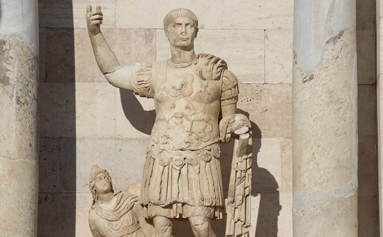 Prof. Dr. Celal Şimşek açıklamalarına şöyle devam etti: Tabii ki 2 metre 84 santimetre olan İmparator Trajan heykeli de devasa boyutuyla ve proporsiyonuyla (büyüklükler arasındaki orantı), özellikle de üzerindeki zırhta bulunan betimlemeleriyle çok nadir bir örnek. Biz burada, Anadolu’da, ülkemizde ilk kez orijinal yerine bu heykel grubunu yerleştirdik. Ön cephede heykelin konduğu ana alanının 10 metreye yakın bir yüksekliği söz konusu. Yandaki alanın da 8 metre civarında bir yüksekliği var. Restorasyonu tamamlanan yapı Laodikya’da cazibe alanı oluşturdu.