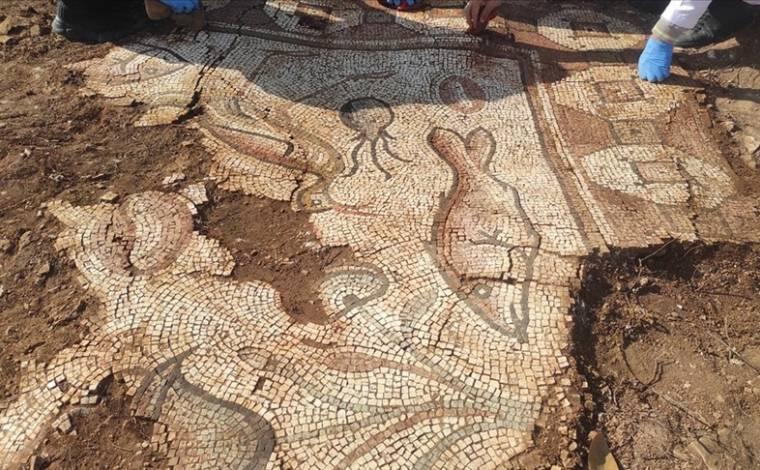 Roma villasında deniz canlıları figürlü mozaikler ortaya çıkarıldı.