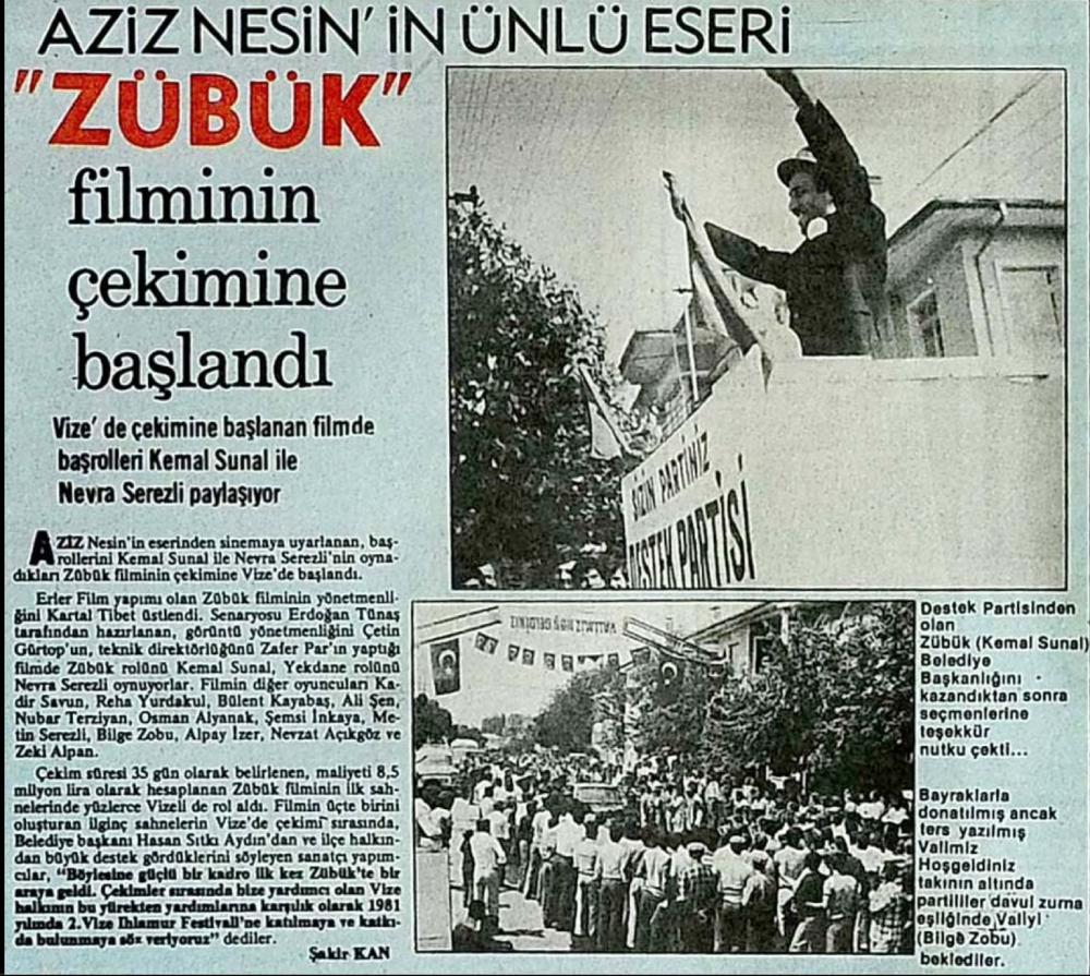 Usta oyuncu Kemal Sunal, 'Zübük'ün başrolündeydi. Birkaç gün önce Twitter’da (yeni adıyla X’te) Umut adlı bir kullanıcı “Uzun zamandır sansürlenen ve TV’lerde yayınlanmayan Aziz Nesin’in ünlü romanından uyarlanan ‘Zübük’ filmini, full ve HD olarak buraya bırakıyorum. Herkese ulaştırın!” diyerek 1980 yılında Kartal Tibet’in Aziz Nesin’in aynı adlı romanından uyarlanan ve Kemal Sunal’ın başrolde oynadığı filmin tamamını paylaştı.