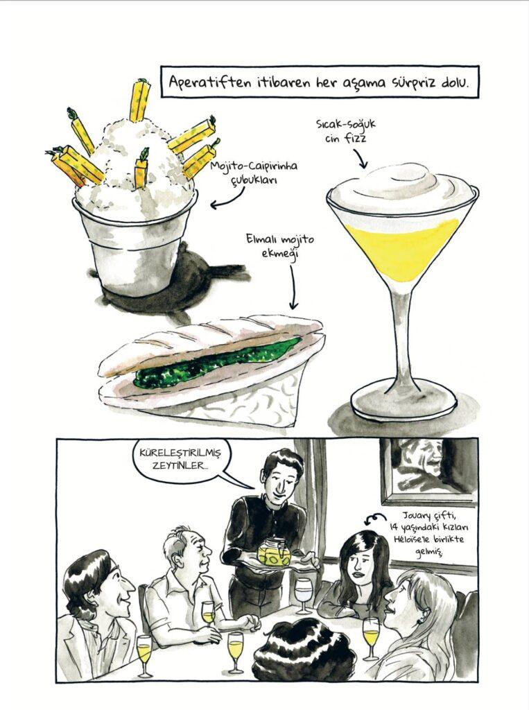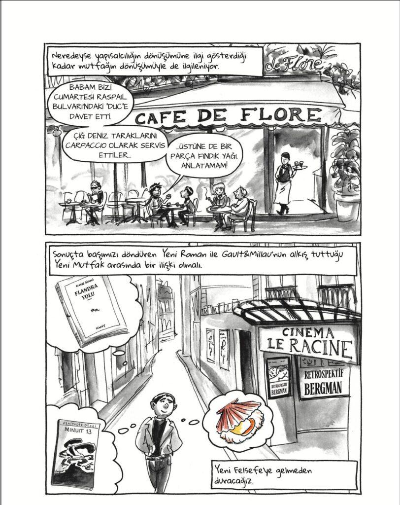 Benim beğendiğim ya da zihnimde yer eden bölümler şöyleydi: Özellikle hocası Barthes’i evine çağırıp kendi elleriyle yaptığı menüyü tattırması, sonrasında Benoît cephesine göre çok verimli geçen o geceye ilişkin ünlü Fransız filozofun düşüncesini arkadaşı Jean-Christophe üzerinden öğrenişi (yorumu şöyle olmuş Barthes’in “Çok ince düşünülmüş, çok özenli ama biraz çilekeş”), kız arkadaşı vesilesiyle Belçika’ya taşınma kararı alışı, ailesinin bu duruma karşı çıkmaları, üstüne üstlük annesinin hazırladığı teze karşı yorumu (“Tenten hakkında bir tez. Seni çok ileri götürür tabii!”), yeni bir ülkede geçinmek üzere aşçılık yapmaya karar vermesi ve gazetedeki ilana “Kutlama yemekleriniz için yetenekli genç Fransız şef” ibaresi yazdırması ve ‘Fransız’ notunun ilgi görerek sık sık aranması ve kendisine şef olarak görev verilmesi…