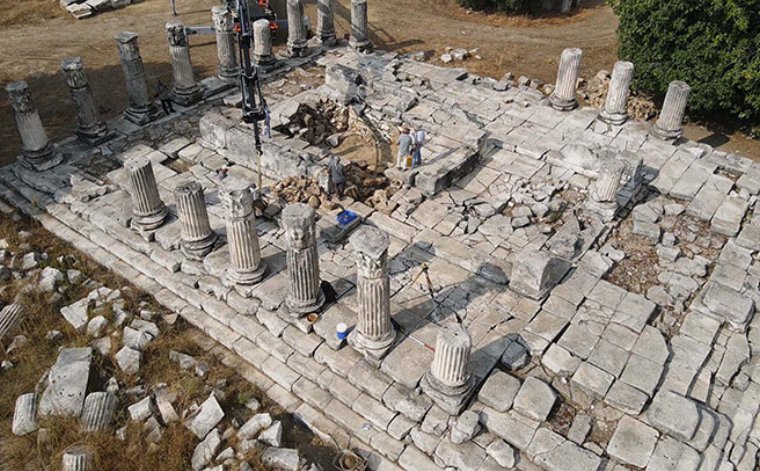 “Osmanlı döneminde Osman Hamdi Bey’in Batı Anadolu’da ilk kazı yaptığı yerlerden biri de burası.1891-1892 yıllarında burada Osmanlı İmparatorluğu adına kazılar yapmıştı. Şimdi biz ara ara buradaki çalışmaları da sürdürüyoruz. Tapınakta hem kazı hem çizim çalışmaları hem de tapınağın üst yapısıyla ilgili geçici anastylosis (Kazı sonucu ortaya çıkarılan bloklardan bir yapının, hiçbir yeni öğe eklenmeksizin eski biçiminde yeniden yapımı) çalışmalarını sürdürüyoruz. Böylesine önemli bir kültür merkezindeki süreci ve buraya dair antik mimariyi daha iyi biliyor duruma geldik.”