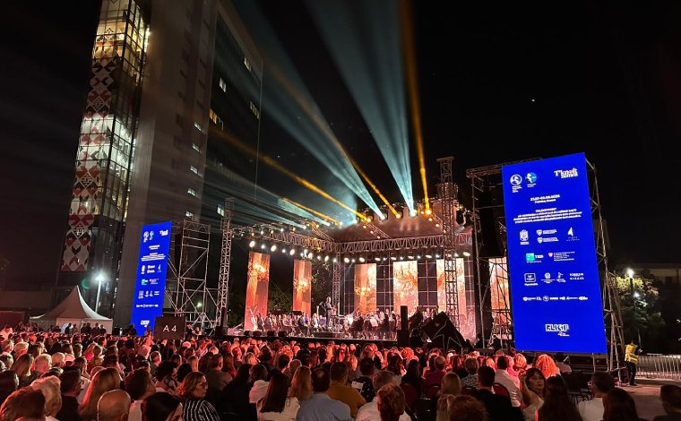 Kosova Başbakanlık binasının önünde kurulan sahnede gerçekleşen konseri yüzlerce müziksever izledi.