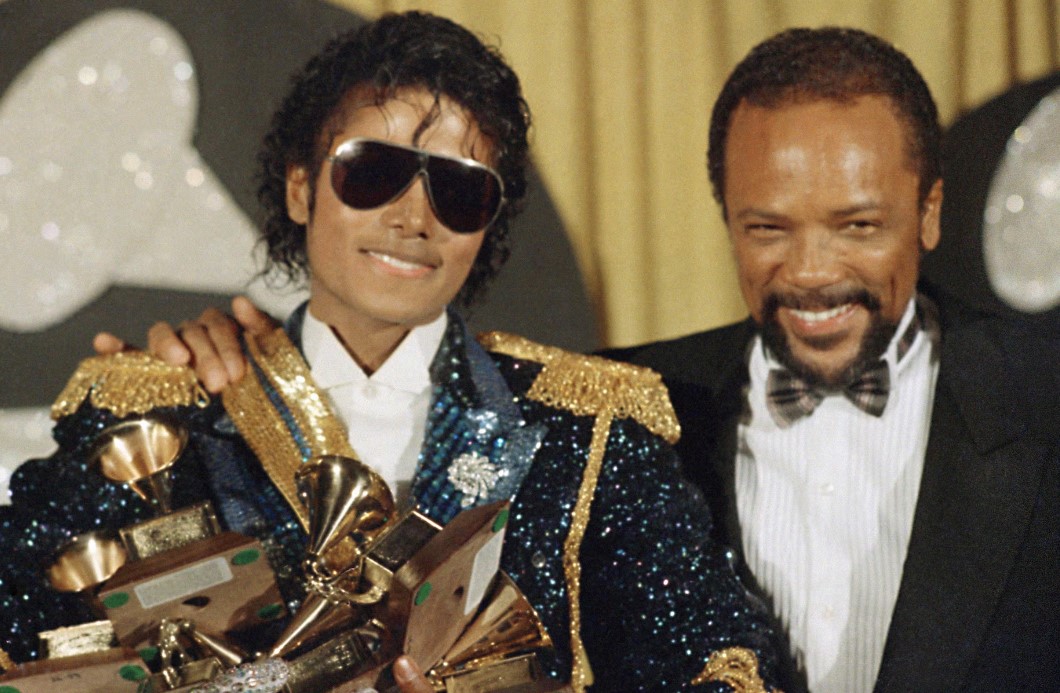 Michael Jackson ve Quincy Jones, 1984 Grammy Ödülleri’nde. Fotoğraf: AP.