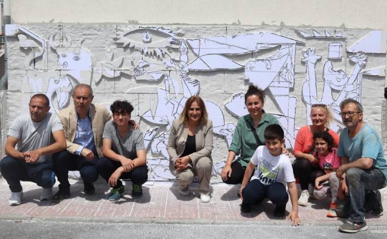 Mehmet Emin Pulatkonak Ortaokulu/İmam Hatip Ortaokulu’na resmedilen Guernica çizimi.