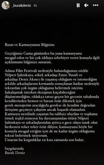 Burak Deniz, Instagram hesabından yaptığı açıklamada olayları “kırgınlık” olarak adlandırdı.