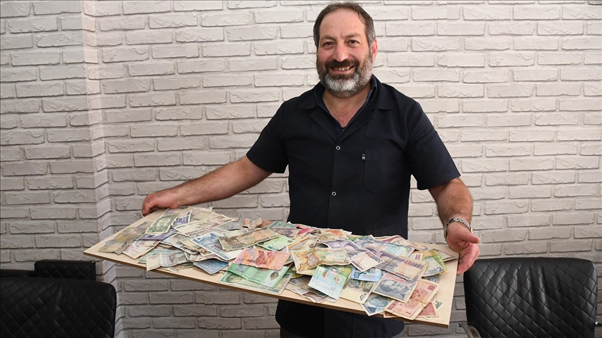 Mesleğini severek yaptığını anlatan 40 yaşındaki Keskin, dükkanındaki en ilgi çeken kısmın ise banknot koleksiyonu olduğunu belirtti.