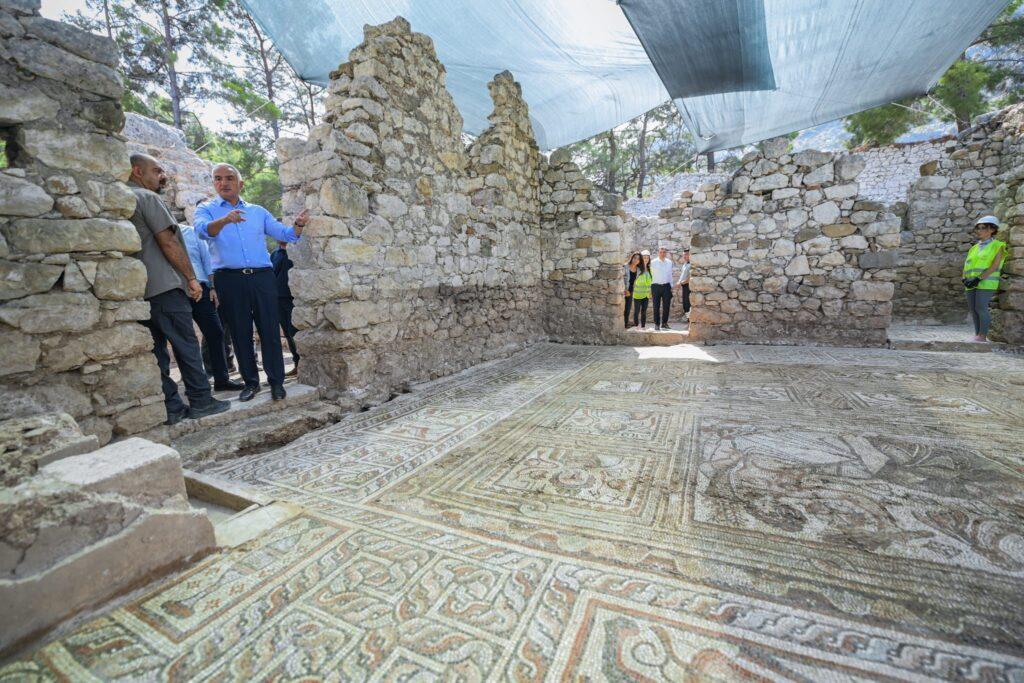 Mozaiklerin bulunması sonrasında Kültür ve Turizm Bakanı Mehmet Ersoy kazı alanını ziyaret edip kazı başkanı Doç. Dr. Gökçen Öztaşkın’dan bilgi aldı.