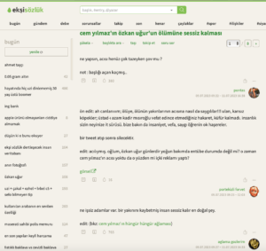 Özkan Uğur’un kaybından sonra, Ekşi Sözlük’te “Cem Yılmaz’ın Özkan Uğur’un ölümüne sessiz kalması, Arda Güler’in Özkan Uğur’un ölümüne sessiz kalması” gibi başlıklar açıldı.