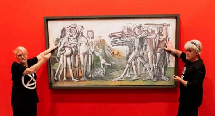 Avustralya’da çevreci aktivist hareket Yokoluş İsyanı üyeleri İspanyol ressam Pablo Picasso’nun bir tablosuna ellerini yapıştırarak eylem yaptı. Melbourne’deki Ulusal Galeri’deki eylemciler “Gazı, kömürü, petrolü ve sürekli ağaç kesmeyi durdurun” diye slogan attı. İki gösterici ifadeleri alındıktan sonra bırakıldı. Eylem sonrası Picasso’nun “Kore’de Katliam” tablosunun ince bir plastik tabakayla korunması nedeniyle zarar görmediği açıklandı. Galeriye ödünç verilen tablo, İspanyol ressamın 1951’de yaptığı savaş karşıtı mesaj verdiği bir eser.