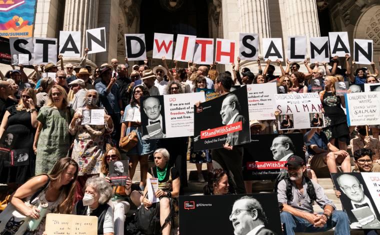 Bıçaklı saldırı sonrası Rushdie’ye destek için gösteriler düzenlenmişti.