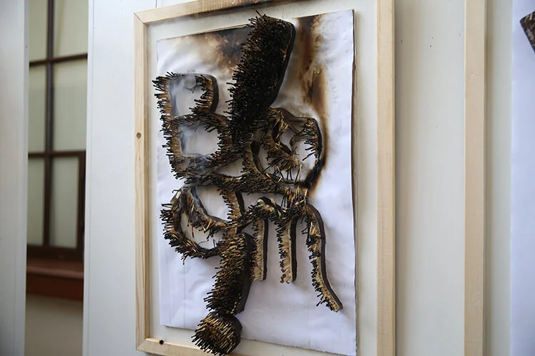 Semih Aydoğan’ın insanların anlık öfkeleri sonrasında ortaya çıkan sinir halini temsilen kibritlerden “Boom” yazısının yakıldıktan sonraki hali.