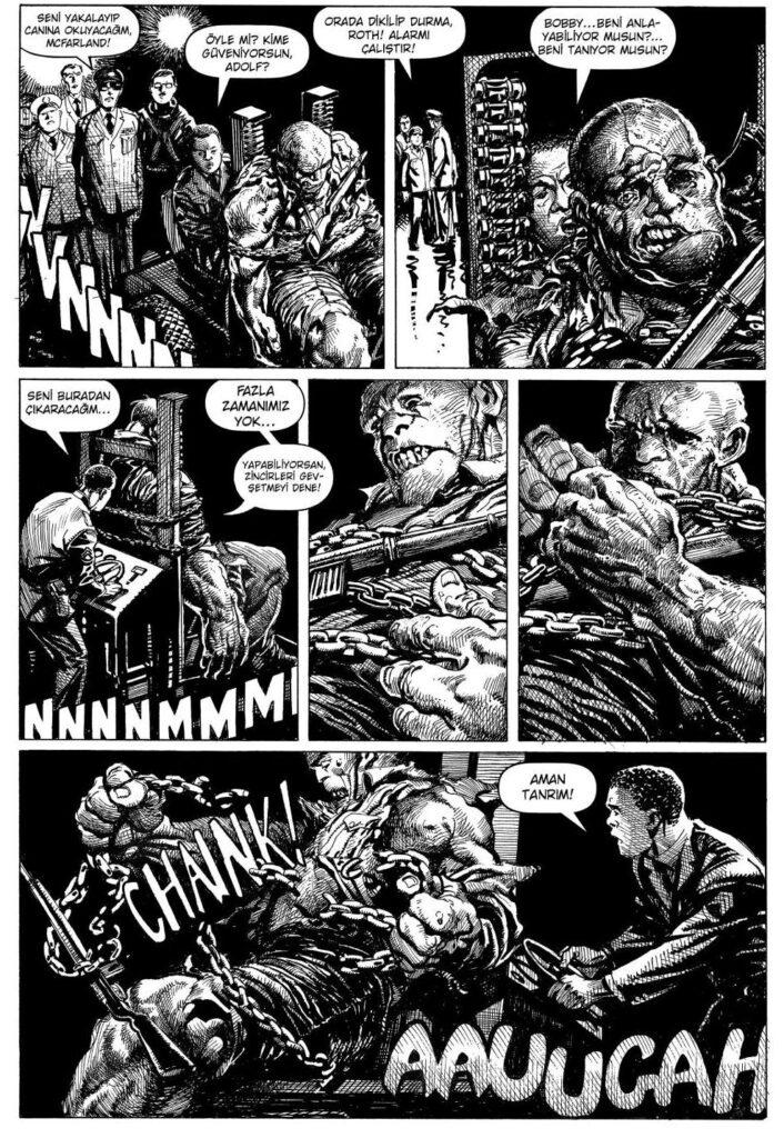 Girişte konusunu özetlediğim ‘Monsters’ ise Barry Windsor-Smith’in yaklaşık 35 yılı aşkın süredir üzerinde çalıştığı devasa bir projeydi. Geniş hacmi (365 sayfa), son derece zengin görsel atmosferi ve yoğun diyaloglarıyla çok çok özel bir eser olduğunu söyleyebilirim. Ana karakterlerinin farklı dünyalarında gezinen, aile yapılarına uğrayan, öte yandan politik yanlarıyla da kimi adreslere göndermelerde bulunan bu eser bir parça ‘Frankenstein’, daha büyük oranda da ‘Hulk’tan esintiler sunuyor.