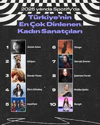 Onu Gülşen, Hande Yener ve Ebru Gündeş takip ederken listenin beşinciliğine ise 2025 Eylül ayı EQUAL elçisi olan Manifest yerleşti. Mmanifest aynı zamanda 2025’te Spotify üzerinden sosyal medya veya anında mesajlaşma uygulamaları da dahil olmak üzere herhangi bir platformda en çok paylaşılan sanatçı oldu.