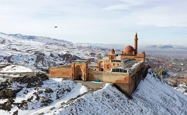 Yüzlerce yıllık geçmişi ve görkemiyle İshak Paşa Sarayı yerli ve yabancı turistlerin ilgisini çekmeye devam ediyor. Ağrı’nın Doğubeyazıt ilçesinin güneyinde, doğu ve güney tarafı sarp dağlarla çevrili alandaki tepede yer alan saray 2023’te 213 bin yerli ve yabancı ziyaretçi ağırladı. Osmanlı’nın Lale Devri’nde, 18. yüzyılda inşa edilen ve UNESCO’nun Dünya Mirası Geçici Listesi’nde de yer alan saray yerleşkesinde cami, odalar, surlar, türbe, iç ve dış avlular, divan ile harem salonları yer alıyor.