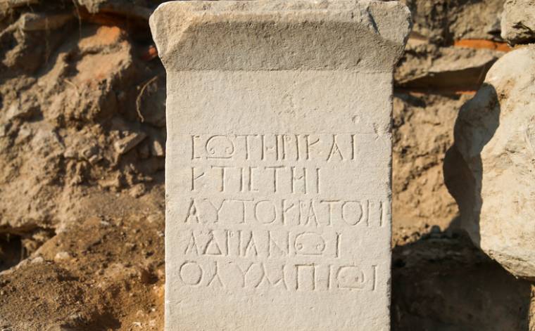 Çalışmalarda Roma İmparatoru Hadrianus’a adanmış bir yazıta ulaşıldı. 80 santimetre uzunluğunda ve 35 santimetre genişliğindeki mermer yazıtta, “Kurtarıcı ve kurucu imparator Hadrianus Olimpius’a” şeklinde ifade bulunuyor. Arkeologlar imparator Hadrianus’un o dönemde kentlere yardımda bulunduğu, bunun karşılığında da bölge halkından kendisine övücü sözler beklediğini, kitabenin de bu amaçla yazılmış olabileceğini değerlendiriyor.