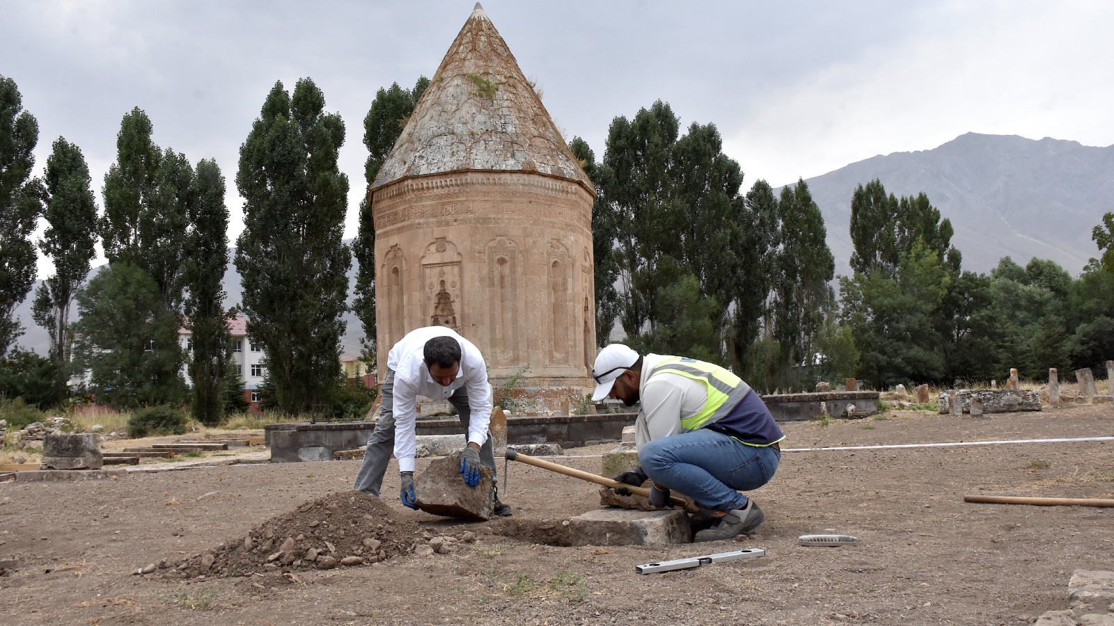Van’ın Gevaş ilçesindeki Selçuklu Mezarlığı’nda yürütülen kazı ve restorasyon çalışmalarında 6 yeni mezar gün yüzüne çıkarıldı.