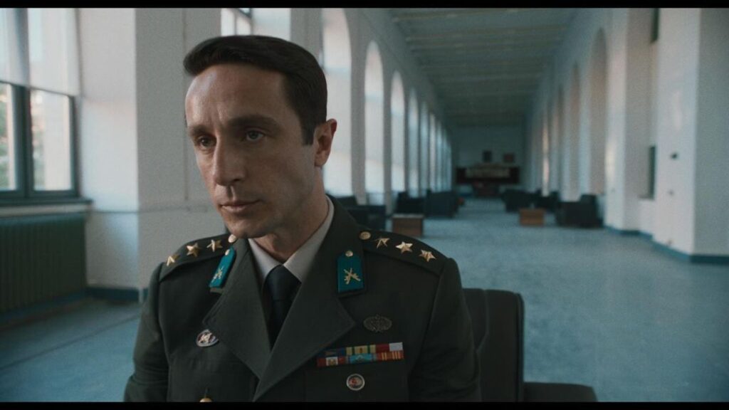 Filmde elleri kelepçeli Kenan (Berk Hakman) subay agabeyi Sinan tarafından (Ahmet Rifat Şungar) Malatya’ya sorgulanmaya götürülüyor.