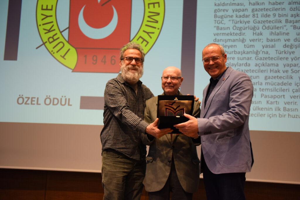 Bu yıl ilk kez verilen Özel Ödül kapsamında düşünce ve ifade özgürlüğüne katkıları, sansür karşısında verdikleri mücadeleyle Türkiye Gazeteciler Cemiyeti’ne (TGC) takdim edildi. TGC Yönetim Kurulu üyesi Uğur Güç, plaketi Türkiye Yazarlar Sendikası Başkanı Adnan Özyalçıner ve PEN Türkiye Yönetim Kurulu Üyesi Haydar Ergülen’in elinden aldı. Güç ödülü alırken “Tüm bu karanlık baskı ortamında Türkiye Gazeteciler Cemiyeti olarak cesurca gerçekleri anlatmaya çalışan gazeteciler, yazarlar, sanatçılar ve akademisyenlerle birlikte mücadele ediyor, zorluklara ve olumsuzluklara hep birlikte göğüs geriyoruz” dedi.