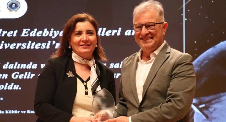Panelin ardından Kocaeli Üniversitesi Rektör Yardımcısı Prof. Dr. Elif Öğüt, Kopan’a ödülünü verdi.