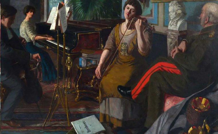 Abdülmecit Efendi’nin 1915’te resmettiği ‘Haremde Beethoven’ tablosu.