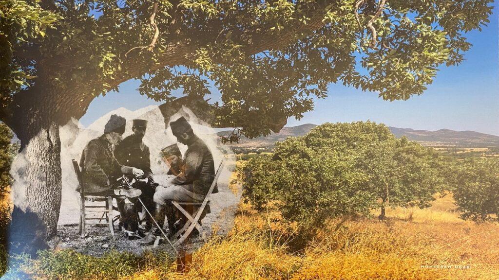 Bu yolculuğun görsel olarak izini sürüyordu kitap. Mustafa Kemal Atatürk’ün bilinen ya da az bilinen pek çok fotoğrafı kılavuz olmuştu yolculuğa. 100 yıl sonra aynı yerde tekrar fotoğraflar çekilmişti.
