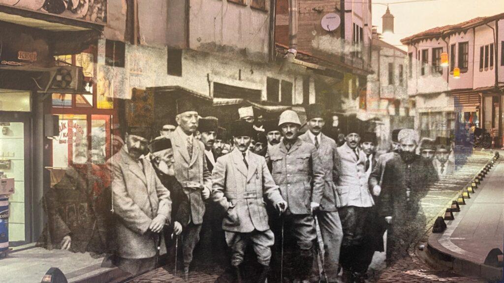 Sivas Kongresi sonrası Tokat’a yolu düşen Mustafa Kemal Paşa burada şehrin ileri gelenleriyle görüştü. Tokat İhtiyat Zabitleri Yardımlaşma Cemiyeti’ni ziyaret etti. İşte o ziyaret sonrasında Tokat sokaklarında çekildi bu fotoğraf. Bu sokak ve yapılar hala korunduğu için günümüze kadar ulaşmış durumda.