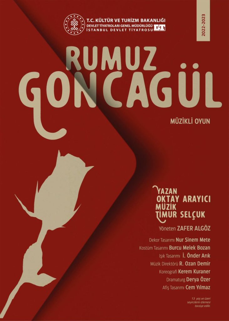 Oktay Arayıcı’nın Rumuz Goncagül eseri, Timur Selçuk’un müzikleri ve Zafer Algöz rejisiyle 10 Ocak’ta İstanbul Devlet Tiyatrosu’nda sahnelenecek. Oyunu sosyal medya hesabından duyuran Zafer Algöz, afişi Cem Yılmaz’ın tasarladığını söyledi. Algöz “Cumhuriyetimizin 100. yılında bir Türk klasiğiyle huzurunuzdayız. Oktay Arayıcı’nın oyununa Timur Selçuk besteleriyle lezzet katmaktır muradımız. 10 Ocak itibarıyla İstanbul Devlet Tiyatrosu sahnelerindeyiz. Afiş tasarımıyla katkıda bulunan Cem Yılmaz’a teşekkürler” dedi. Cem Yılmaz da “Ben teşekkür ederim. Tasarımlarımda minimal çalışırım” yanıtı verdi.