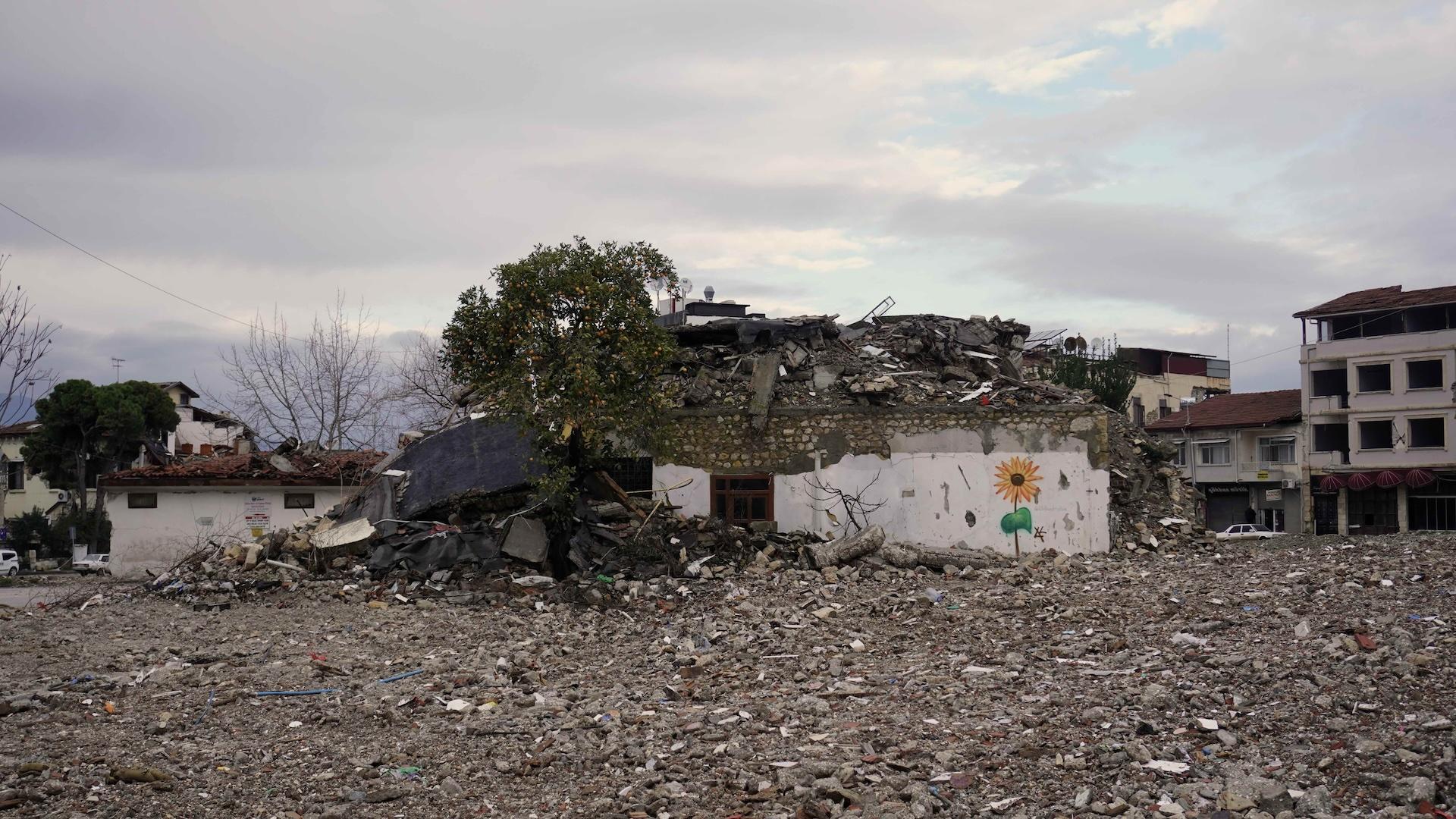 İki katlı bir yapı. Yıkılmış. Bir yıl geçmiş ama hala enkaz kaldırılmamış. 6 Şubat öncesi belki de altında çay içilen, gölgesinde insanların uyuduğu portakal ağacı da enkaza inat yerinde duruyor ve meyve vermeye devam ediyor. Yaşam bir şekilde filiz de meyve de veriyor. Antakya'da her yer yıkık dökük, acılar büyük ve derin. Ama bu şehrin insanları hala hoşgörülü. Elinde avucunda ne varsa sizinle canı gönülden paylaşıyor. Belki de bu kenti yeniden inşaa edecek bu hoşgörü ve insanlık...