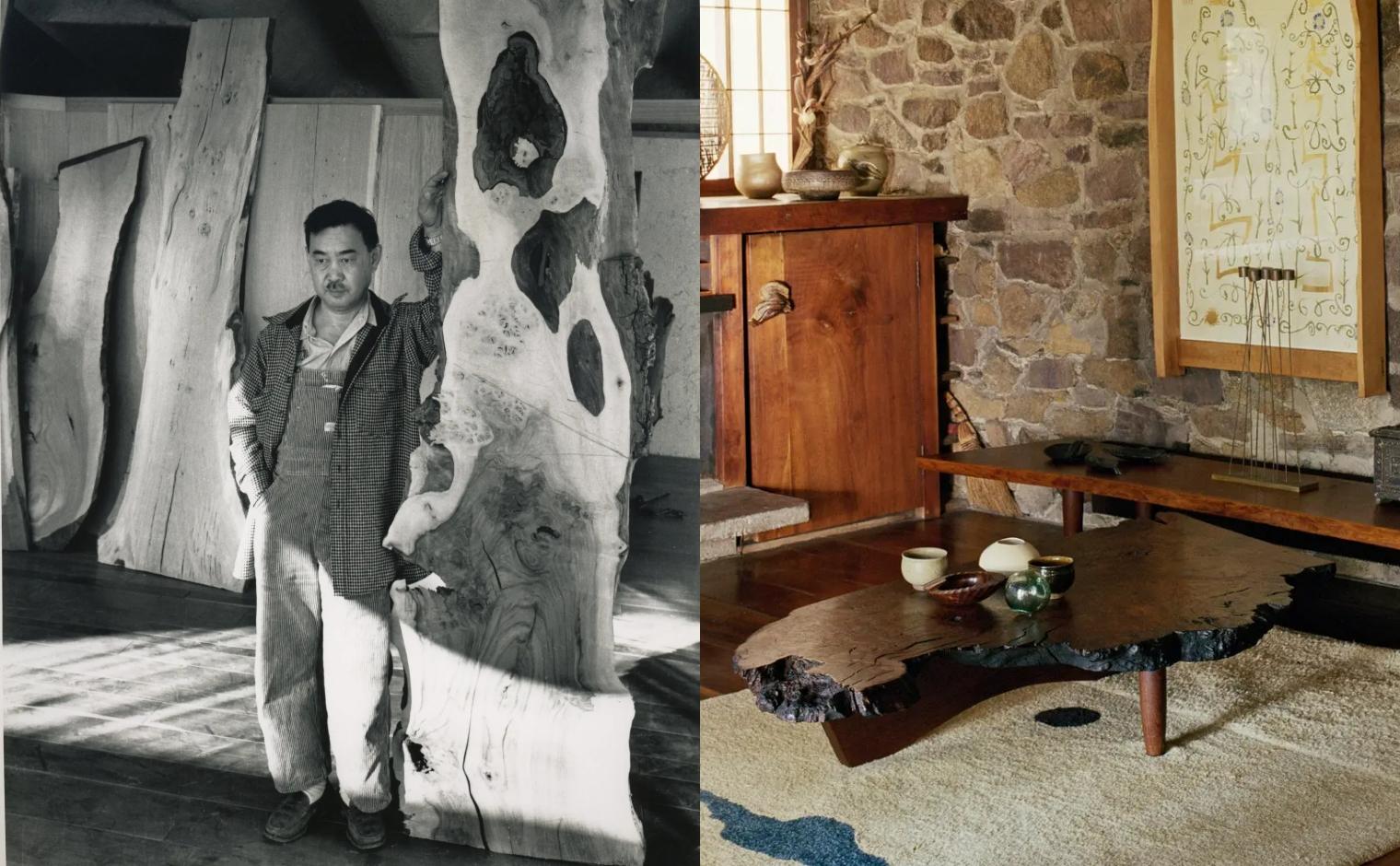 George Nakashima bu büyük sehpayı büyük ve tek parça bir ağaç slabından (diliminden) yaptı ve el işçiliğinin inceliklerini sergiledi.  İşçilik ve organik formlar sayesinde her parça birbirinden ayrı.
