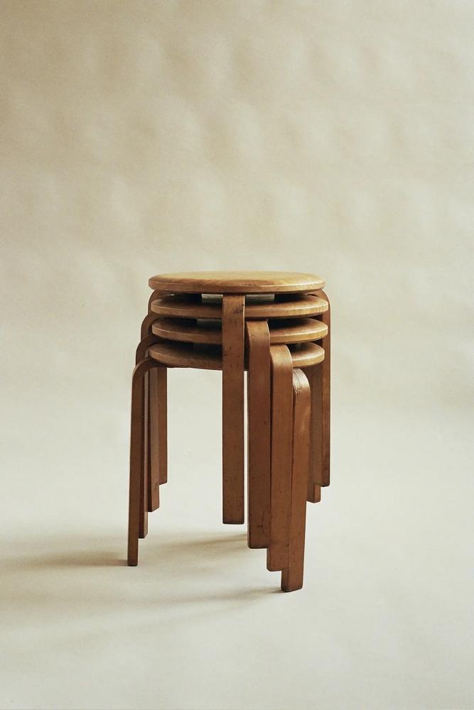 Alvar Aalto’nun 1933’te tasarladığı tabure, fonksiyonel ve minimalist tasarımıyla modern mobilya tasarımının öncülerinden biri oldu. Üç ayaklı bu tabure bükülmüş  kontrplak teknolojisinin yenilikçi bir kullanımını temsil etti. Aalto, bu tasarımla hem estetik hem de üretim kolaylığı sağlayan, dayanıklı ve hafif bir mobilya yarattı.