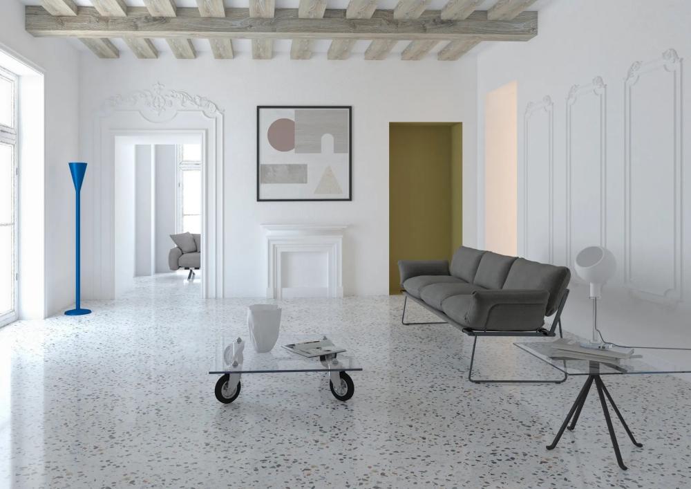 Gae Aulenti’nin 1980’de tasarladığı ‘Table with Wheels’ (Tekerlekli Masa), cam, metal ve kauçuktan. Bu eserde İtalyan tasarımcı ve mimar Aulenti’nin modern ve minimalist bir yaklaşımla, kullanım kolaylığı sağlayan tekerleklerle donatmış.