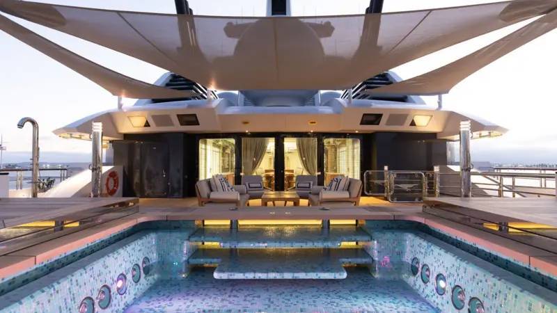Süper yatta spor ve güzellik salonları ile sinema ve şarap mahzeni de bulunuyor.