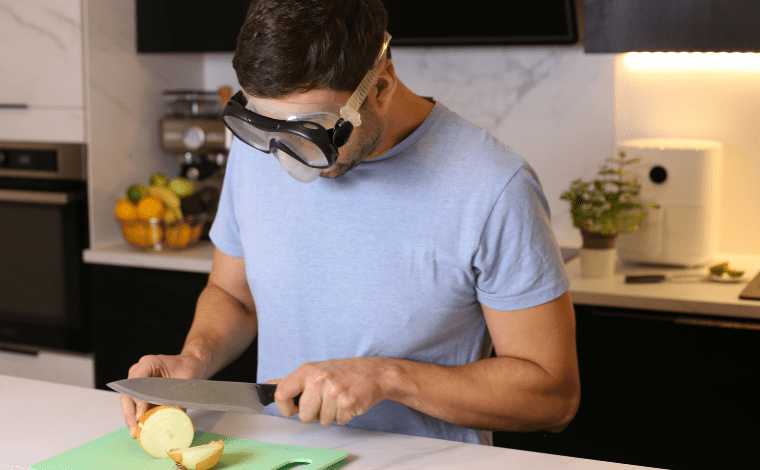 Evet, mutfağın ortasında deniz gözlüğü veya koruyucu gözlük takmak saçma bir görüntü olabilir ancak gözyaşlarınızı engellemek için denemeye değer. Dr. Thiel kendi deneyimden yola çıkarak lens bile taksa göz yaşarmasının azaldığını söylüyor. Yani gözlerinizi bir şekilde korumanız yeterli.