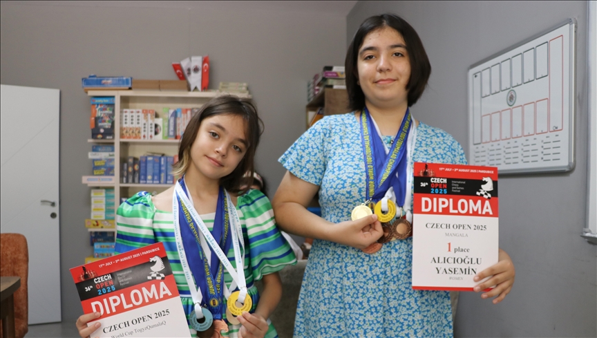 Amasya'da yaşayan 10 yaşındaki Mihrimah ve 13 yaşındaki Yasemin Alıcıoğlu kardeşler annelerinden öğrendikleri zeka ve strateji oyunu mangala ve dokuz kumalakta dünya şampiyonu oldu.