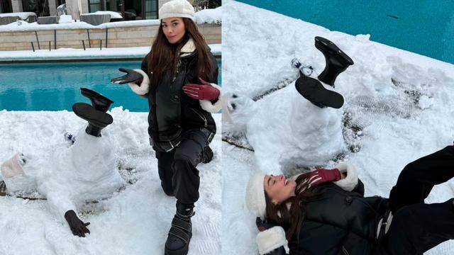 Yerde kayan bir kardan adam yapan Bensu Soral, bunu da sosyal medya hesabından paylaşmadan yapamadı.