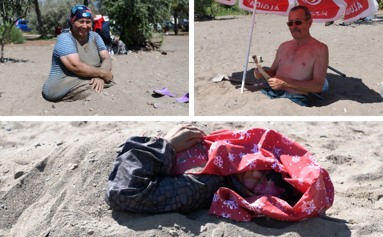 Kum Adası’na sekiz yıldır gelen 66 yaşındaki İbrahim Bağkazar da “Eşimin ayaklarında ve kollarında ağrılar olduğu için gelip burada kalıyoruz. Kumda şifa da buluyoruz” diyor.