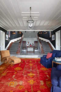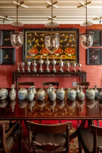 Çek tasarımcı Jindrich Halabala’nın 1930’lu yıllardaki koltuklarının yer aldığı salonda, sanatçı Tayfun Erdoğmuş’un boyadığı duvarlar, Marc Quinn ve Taner Ceylan’ın sanat eserlerine çarpıcı bir fon oluşturuyor.