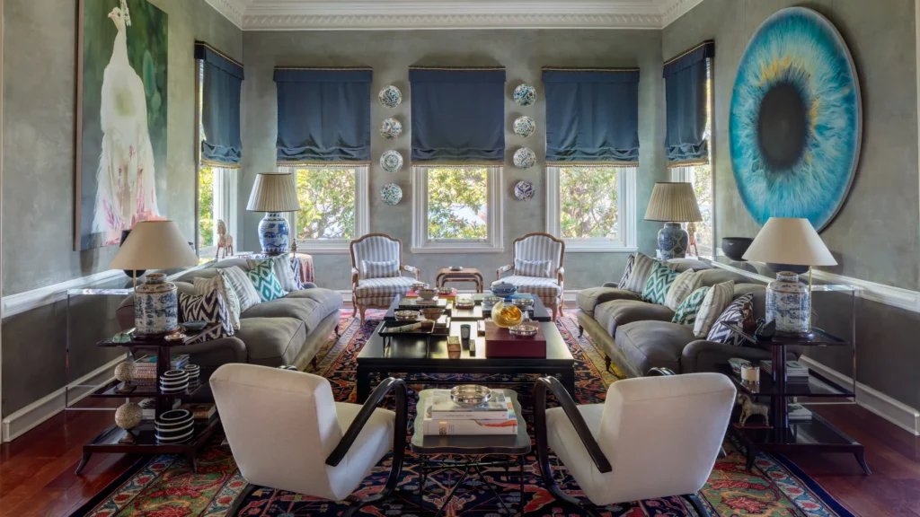 Çek tasarımcı Jindrich Halabala’nın 1930’lu yıllardaki koltuklarının yer aldığı salonda, sanatçı Tayfun Erdoğmuş’un boyadığı duvarlar, Marc Quinn ve Taner Ceylan’ın sanat eserlerine çarpıcı bir fon oluşturuyor.