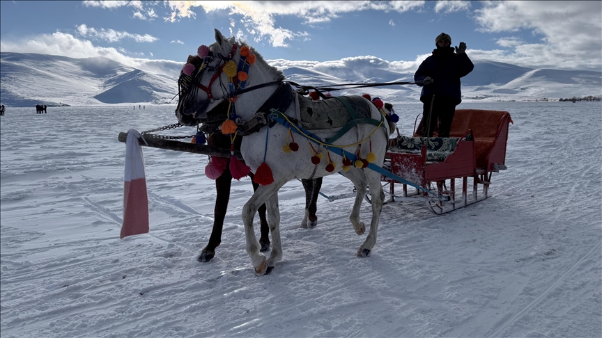 Yerli ve yabancı turistler, göldeki gezintiyi özellikle atlı kızak ve kar motoruna binerek değerlendiriyor.