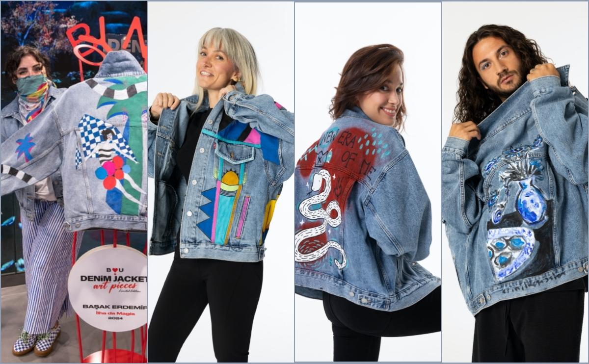 Denim Jacket Art Pieces’te tarzlarındaki farklılıklarla öne çıkan 10 sanatçı var: Başak Erdemir, Deniz Erciyas, Duru Ekşioğlu, Erin İlkcan Aslan, Ezgi Arslan, Mehmet Sinan Kuran, Mil Legal, Rana Korgül, Sinem Yıldırım ve Yiğit Yazıcı. (Meraklısına özgeçmişlerini yazının altına ekledim.)
